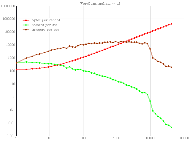 All results are plotted to the same scale with this custom program written in open source Squeak Smalltalk. I wrote a new program because I couldn't find one that could read tabbed text, write gifs, and do log plots all at the same time. I think my charts look much better than excel's. I hope you agree. If you look closely you will notice that the lines are transparent and anti-aliased. This let me use wider lines which look better in thumbnail. .