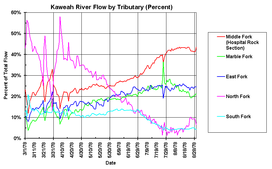 Kaweah River Flow by Tributary and time of Year